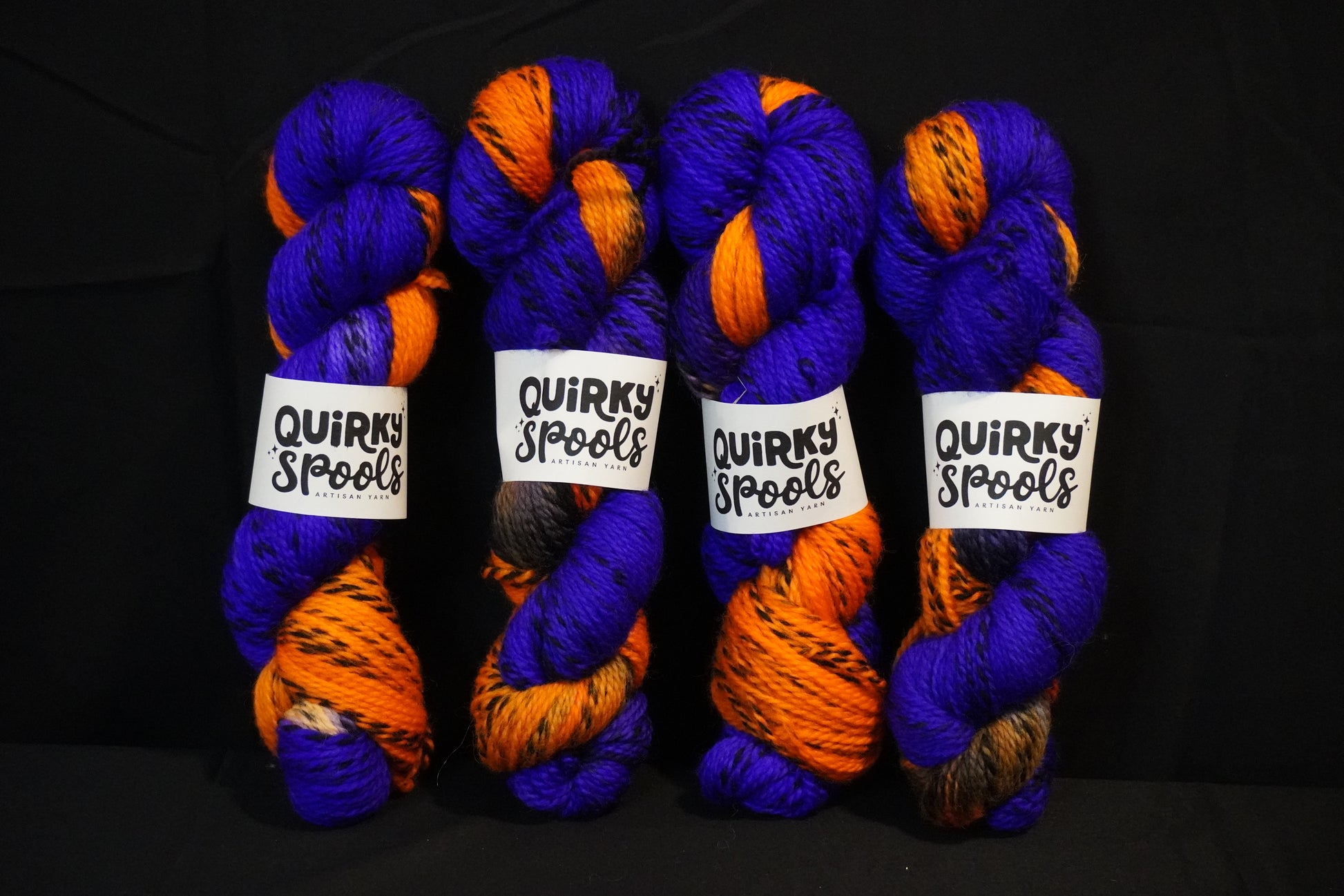 When the jack-oā-lantern glow meets the witching hour sky. Midnight Pumpkin swirls vibrant orange with deep, inky purple for the ultimate spooky-season skein. Perfect for cozy fall knits, striped socks, or statement pieces that scream Halloween chic.