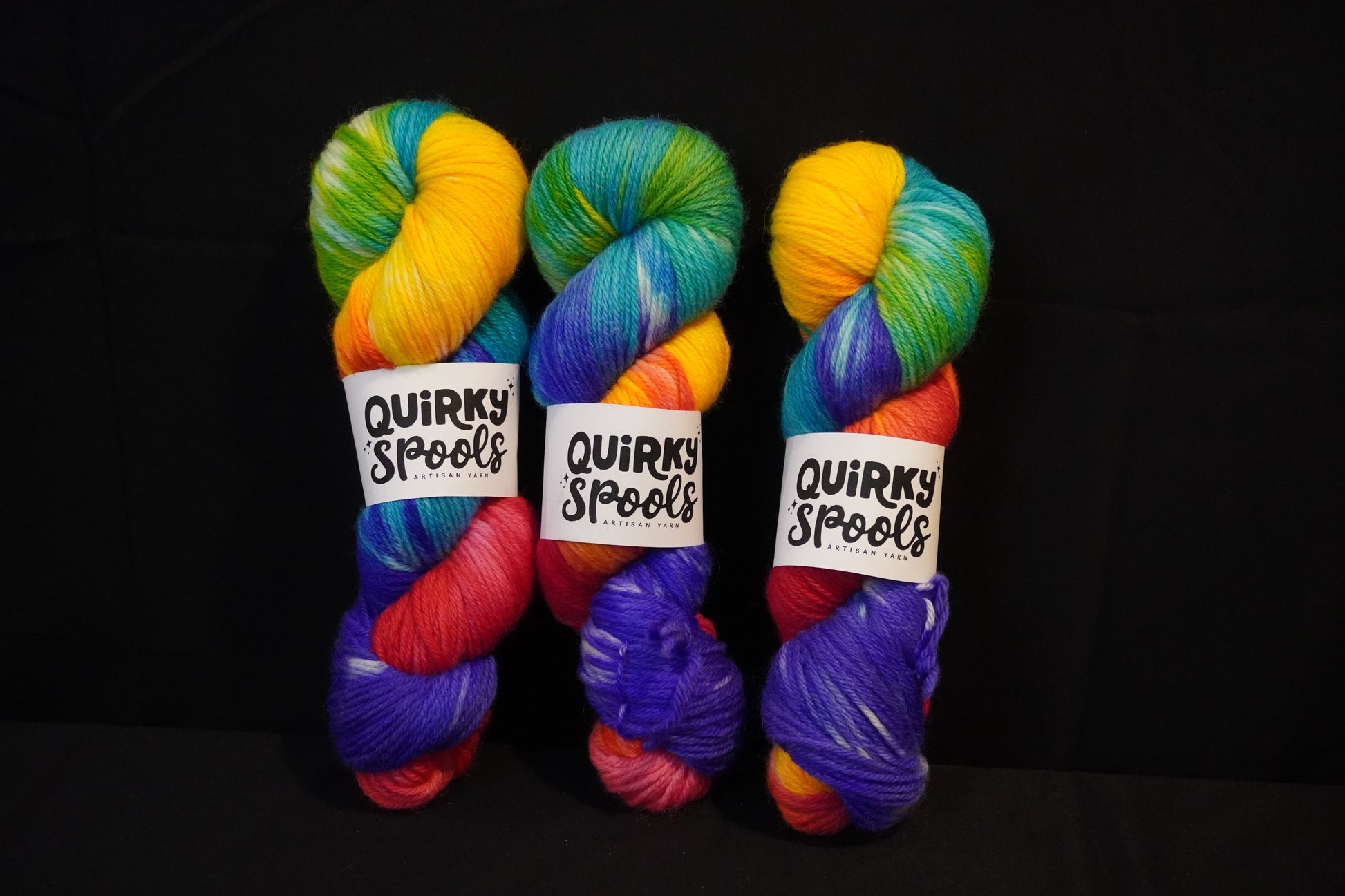 Every stitch is a celebration! Prism Party is a full-spectrum rainbow skein that bursts with bold red, sunny yellow, lush green, vibrant blue, and deep purple. Perfect for pride projects, statement knits, or just adding a blast of color happiness to your WIPs.