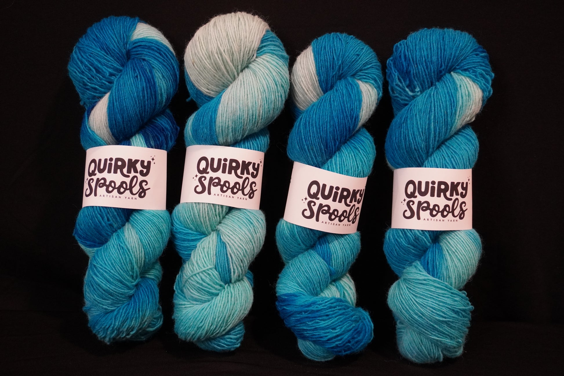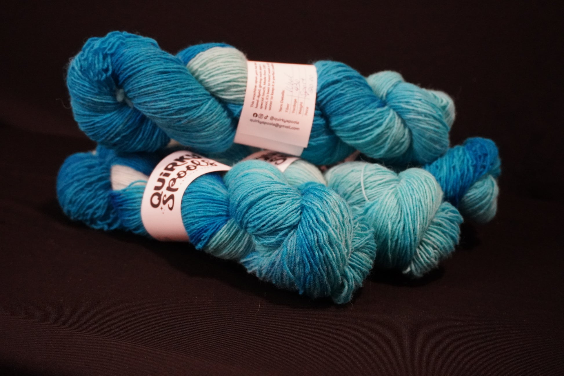 This yarn is made from 100% wool and has been carefully hand-dyed. The colorway features a beautiful blue gradient. Each skein contains 430 yards and is classified as a sport weight yarn.